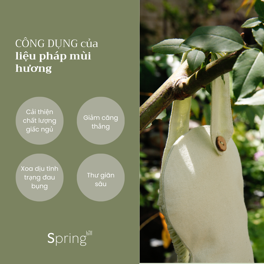 - Thành phần: (1) ruột gòn organic (gòn, nụ hoa oải hương/ hương thảo), (2) ruột thảo mộc (nụ hoa oải hương/ hương thảo, hạt lanh, gạo)